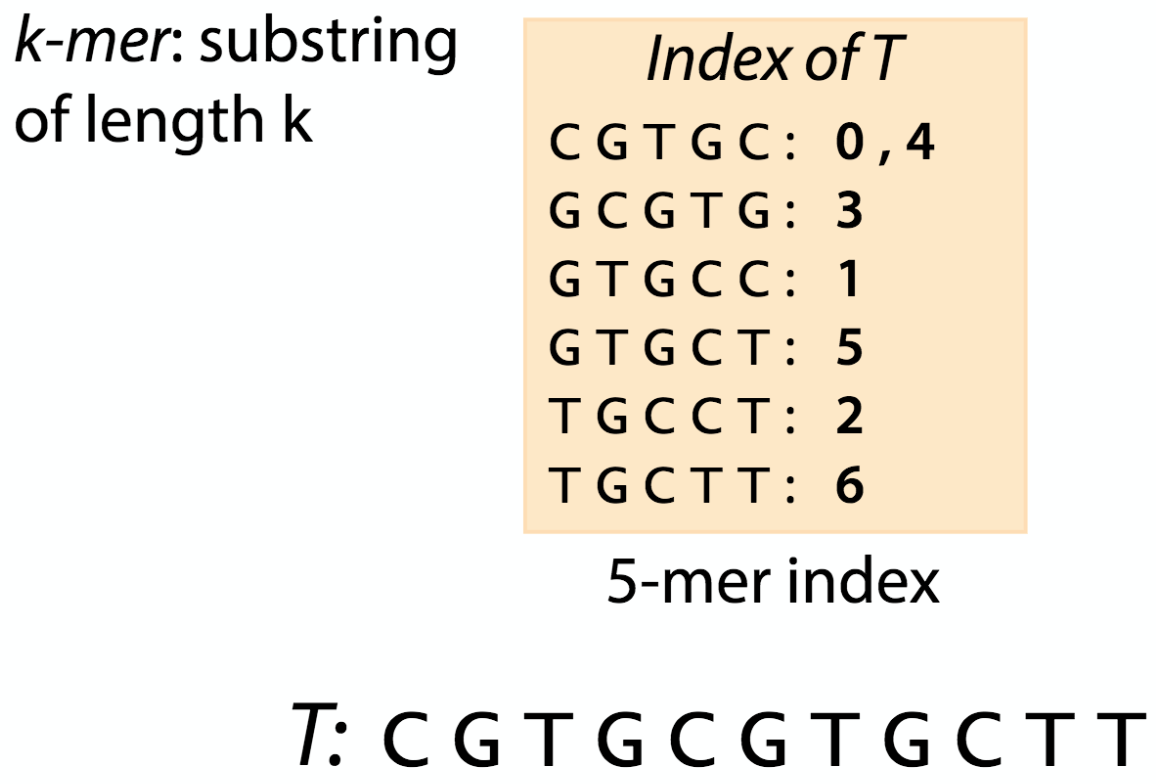 Like the index at the end of a book, an index of a large DNA sequence allows one to rapidly find shorter sequences embedded in it. Different tools use different approaches at genome/transcriptome indexing.