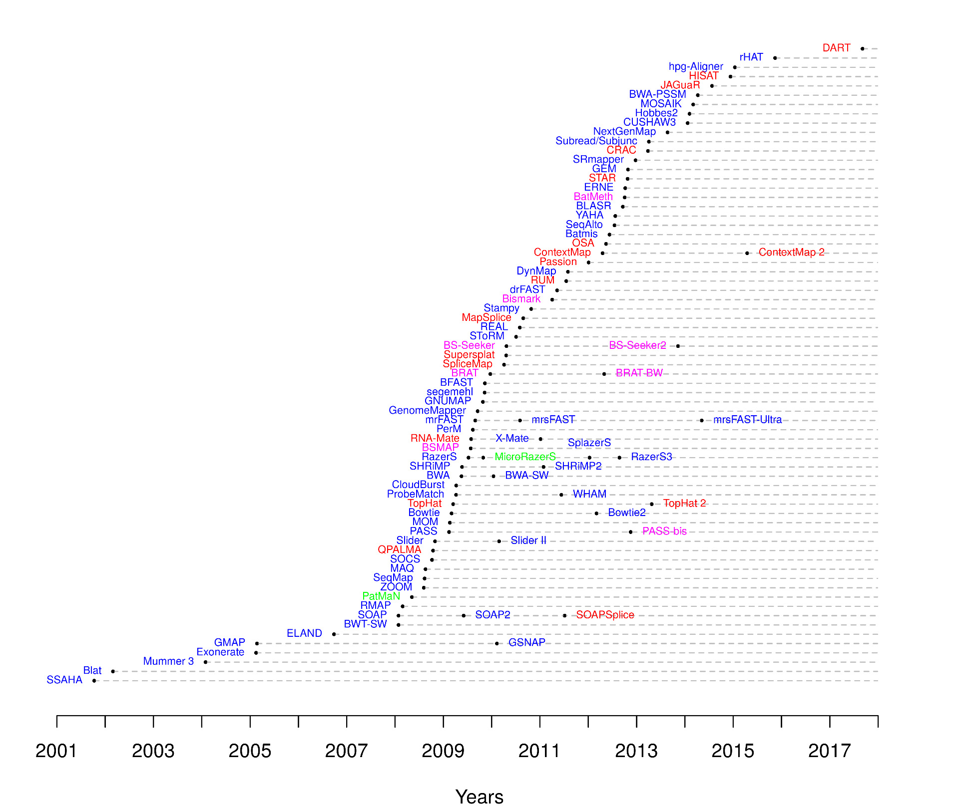 Nuno A. Fonseca, Johan Rung, Alvis Brazma, John C. Marioni, Tools for mapping high-throughput sequencing data, Bioinformatics, Volume 28, Issue 24, December 2012, Pages 3169–3177, https://doi.org/10.1093/bioinformatics/bts605 |
